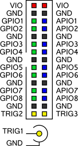 The TRIG pins refer to Trigger Input-Output. The direction and function of each trigger pin is described in Table 2.5.2-1 below. |